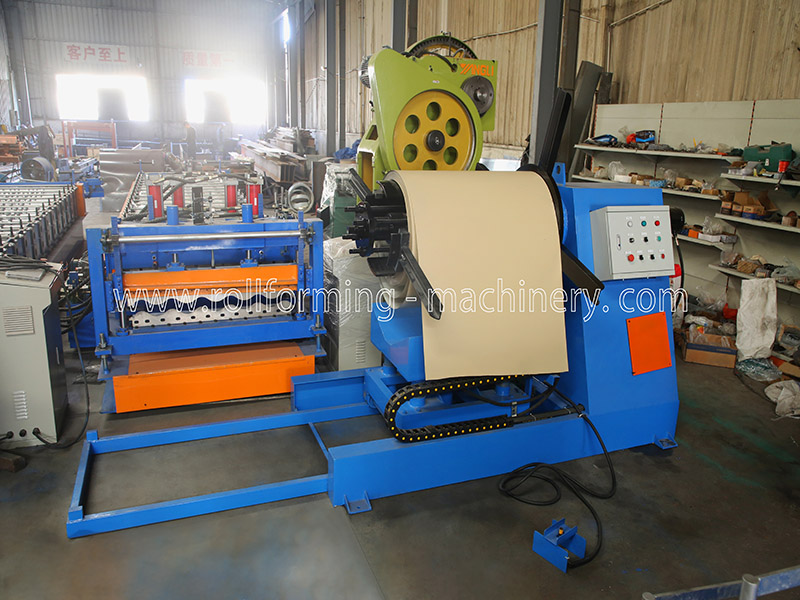 5T Hydraulic Decoiler→Manual Pre-Cutter Device→Feeding Guide Device→Roll Forming System→Hydraulic Post Cutter Device→AUTO Exit Rack