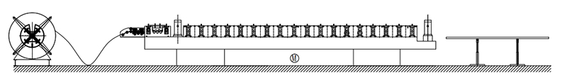 Decoiler→Guide Feeding & Leveling Device→Punching Device→Roll Forming System→Hydraulic Post Cutter →Exit Rack