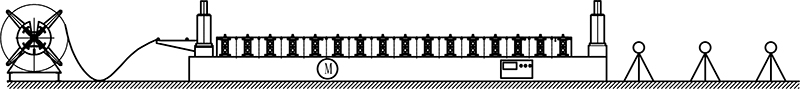 3T Manual Uncoiler→Feeding Guide Device→Hydraulic Pre-Punching Device→Roll Forming System→Hydraulic Post Cutting Device→Exit Rack