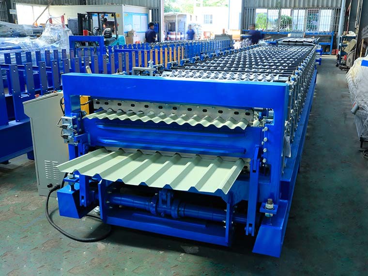 Double Layer Roll Forming Machine can roll form two different roofing profiles without changing anything because it has two layers. Upper and lower can rollform different profiles. Besides,the sea freight for import is saved by 50%.It is popular choice of both new entrepreneurs and established metal building manufacturers. The advantages of Full Automatic Double Layer Roll Forming Machine are as follows: 1.Produce different roof panel size in one machine 2.Easy operation, low maintenance cost 3.Save space