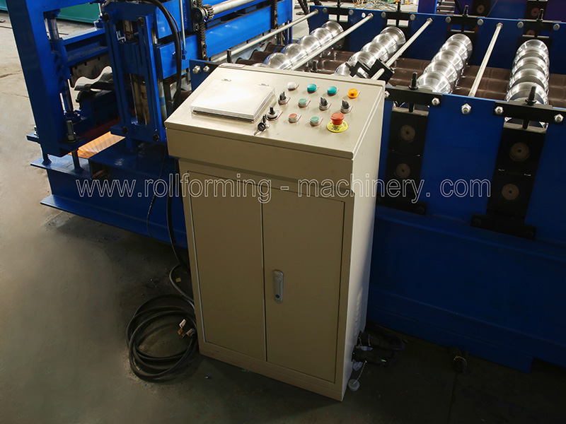 The complete glazed tile forming machine line includes decoiler, main machine, computer controlling system and run out tables. Our machines are equipped with a computer controlling system. We simply program the pieces and length we need in the computer and the glazed tile forming machine produces it automatically. The machines are easy to operate and running stable.